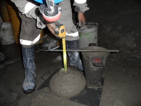 Medición del Slump en las Plantas de concreto y en los frentes previo al lanzado.